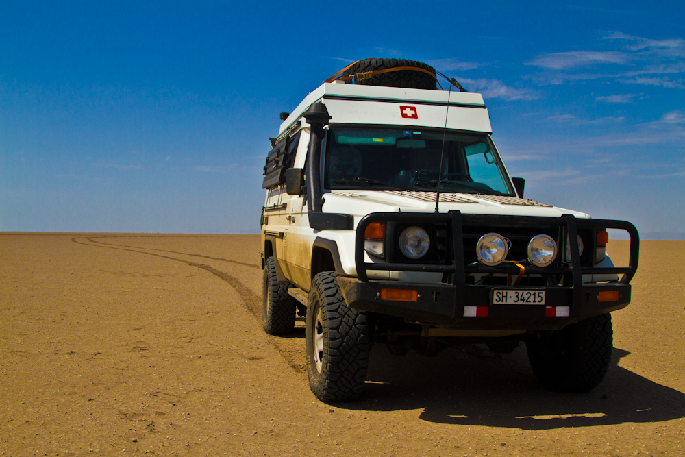 Der Grenzübertritt nach Djibouti am nächsten Tag verläuft ohne Probleme. Ca. 45 Minuten auf äthiopischer Seite und rund 15 Minuten auf djiboutischer Seite. „Bienvenu“ ist hier das Stichwort. Und ich merke schnell, dass meine Französisch(un)kenntnisse nur für das allernötigste reichen. Auf jeden Fall reichen Sie nicht aus, den korrupten Bullen an der ersten Polizeikontrolle mit seinem Wunsch nach einem „Pourboire“ zu verstehen. Auch ein weiteres Zusammentreffen mit der lokalen Polizei, nachdem ich in falscher Richtung durch eine Einbahnstrasse gefahren bin, lässt sich mit einem „Do you speak english“ auf rasche und unbürokratische Weise lösen.