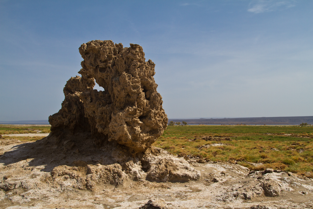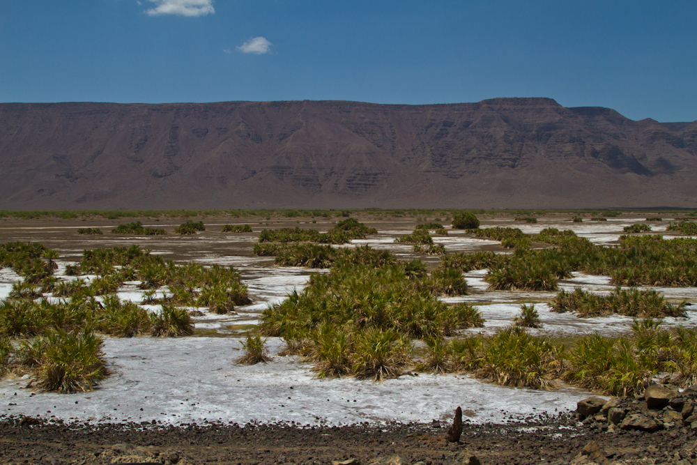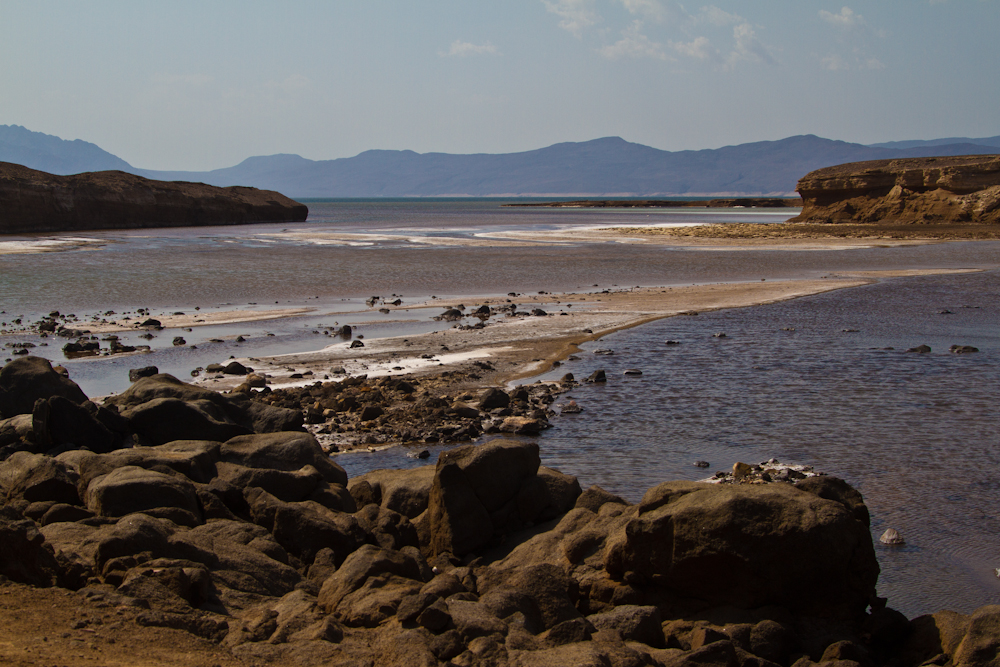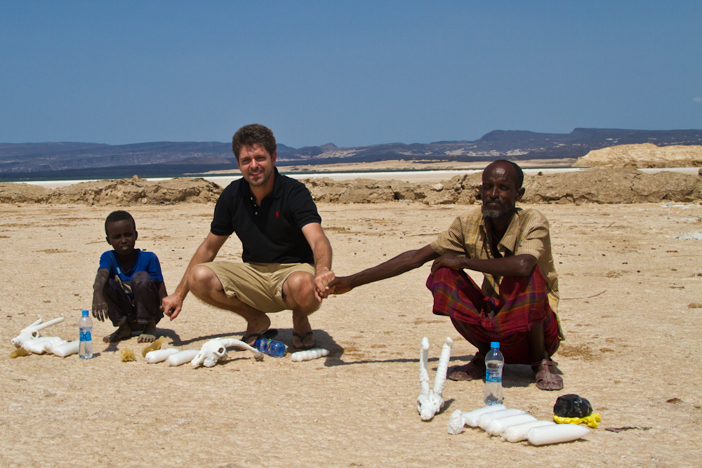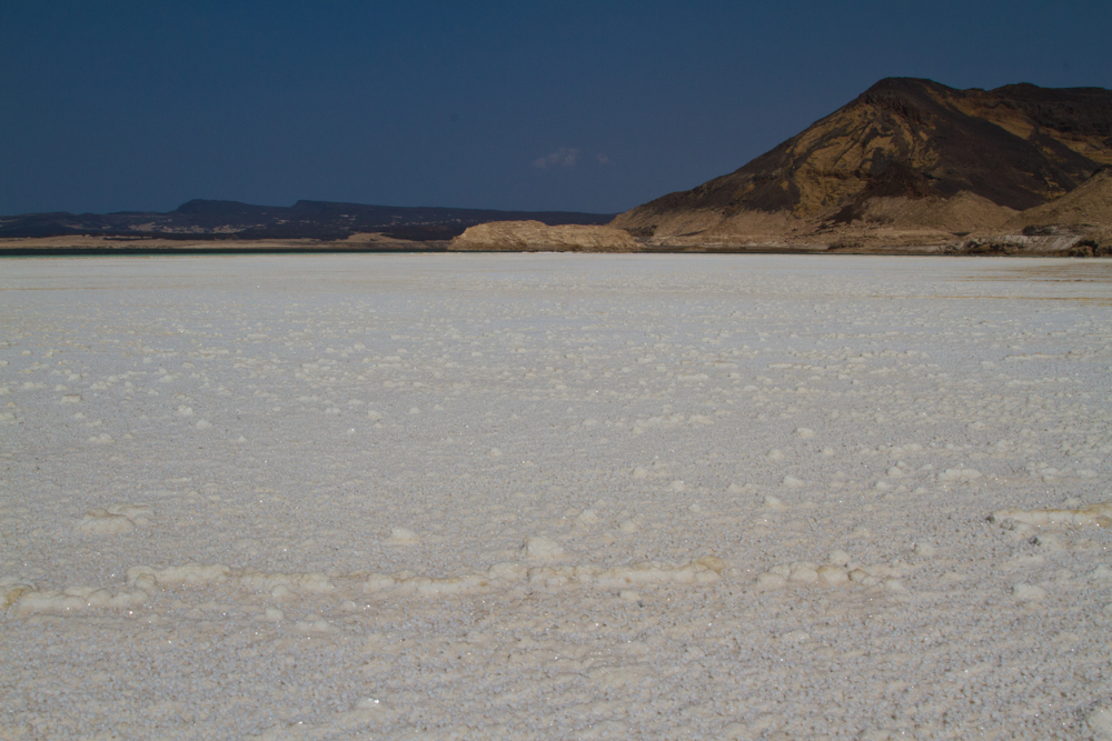 Nach zwei Tagen Erholung am Pool verlasse ich Djibouti Stadt in Richtung Lac Assal. Auch dies ist wieder ein Salzsee und mit 143 Meter unter dem Meeresspiegel der tiefste Punkt auf dem afrikanischen Kontinent. Der See hat einen noch höheren Salzgehalt als das Tote Meer und ich geniesse die Floating-Erfahrung. Ein sehr cooles Gefühl. Im Gegensatz zum Toten Meer hat man hier aber den riesigen See für sich alleine. Weit und breit kein anderer Tourist in Sicht. Nur drei Anwohner haben sich eingefunden, welche Salzkristalle und –skulpturen verkaufen wollen. Die nächsten zwei Tage verbringe ich am Strand – an der Bucht von Tadjoura und geniesse das Meer. Dann aber habe ich genug von dem unerträglichen Klima und den unverschämten Preisen, welche mein Reisebudget auffressen und ich mache mich auf. Es geht wieder zurück nach Äthiopien.