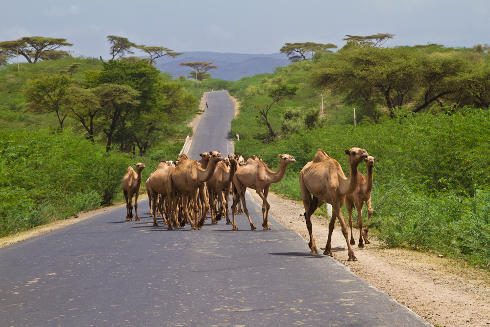 Auf den Strassen kommt einem gerne mal eine Kamelherde entgegen