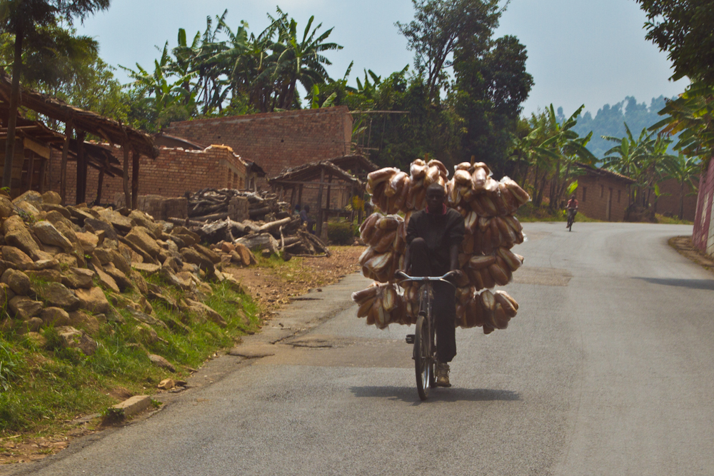 In Burundi werden unheimliche Lasten mit dem Velo transportiert. In dem armen Land fehlt es an motorisierten Transportmöglichkeiten