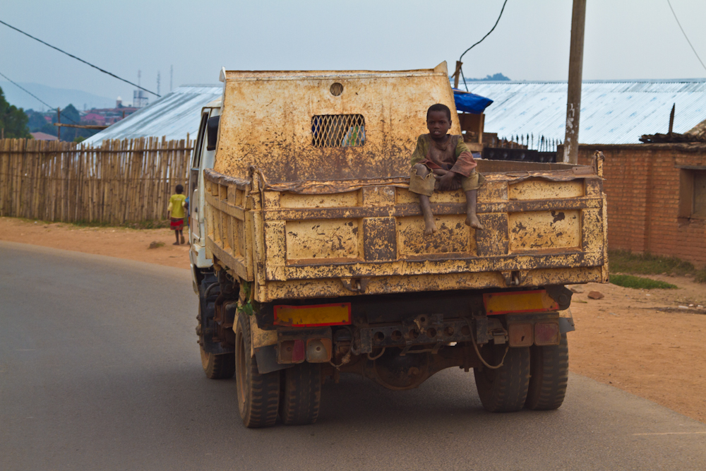 Nun ja, irgendwann schaffe ichs dann trotzdem noch nach Burundi. In Burundi leben die selben Volksgruppen wie in Ruanda, das Land besteht auch hier aus tausend Hügeln und es ist genau so klein und überbevölkert. In Ruanda und Burundi zusammen drängen sich etwa 22 Millionen Einwohner auf einer Fläche, die ca. 30% grösser ist als die Schweiz. Aber einen Unterschied sieht man in Burundi sofort: das Land ist arm, bitterarm. Die Infrastruktur liegt am Boden. Die Mehrheit der Bevölkerung ist in löchrige, schmutzige Lumpen gekleidet. Dieses Land hat sich ganz offensichtlich noch nicht vom kürzlich beendeten Bürgerkrieg erholt.