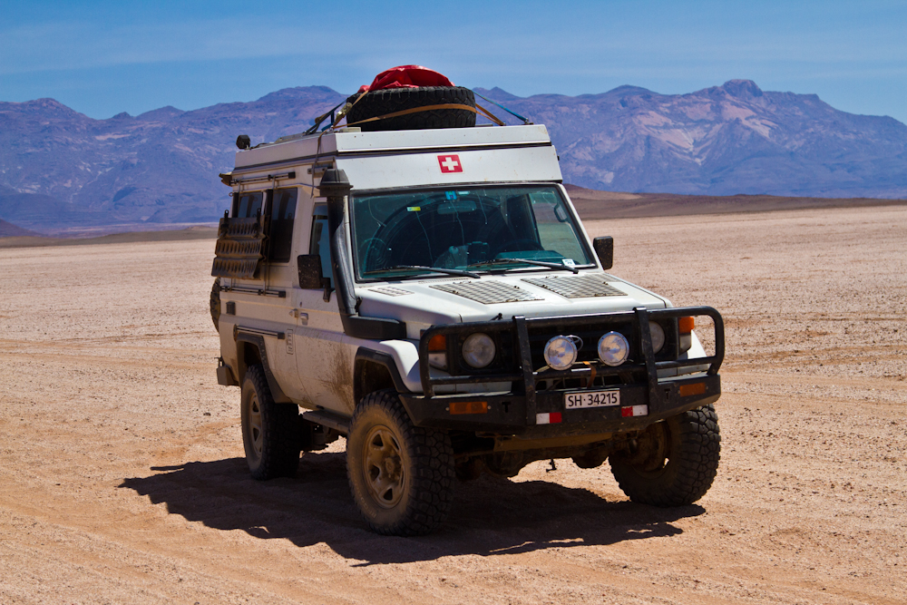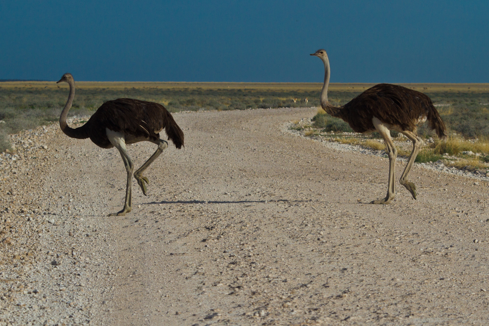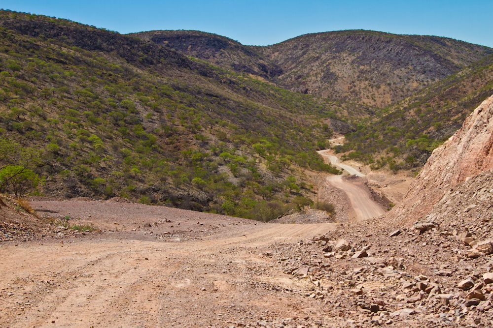 Der Grenzübertritt in Katima Mulilo, dem Grenzort im äussersten Osten Namibias, verläuft zügig. Carnet stempeln, Pass stempeln, Ebola-Fiebermessung und schon bin ich drin im Land. Schon kurz nach der Einreise wird anhand der vorbildlich an den Strassenrändern beschilderten Distanzangaben zu den nächsten Städten klar: Namibia ist ein riesiges Land und die zu bewältigenden Strecken sind gewaltig. Das Land ist grösser als die Schweiz, Österreich, Deutschland und Italien zusammen. Und in jeder Ecke des Landes gibt es Dinge, für die es sich lohnt, hinzufahren um sie anzuschauen. Das hat den Effekt, dass man hier mehr als in anderen afrikanischen Ländern am Steuer sitzt. Und dass man auch öfter zur Zapfsäule muss, denn zweimal die Woche muss ich dem durstigen Taxi jeweils 150 Liter Diesel spendieren. Zum Glück ist dieser mit einem knappen Franken pro Liter gut an den Verbrauch und somit ans Budget angepasst.